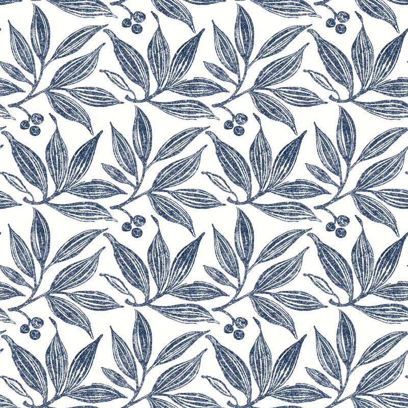 York Wallcovering Chokeberry Block Print Wallpaper Navy/White
