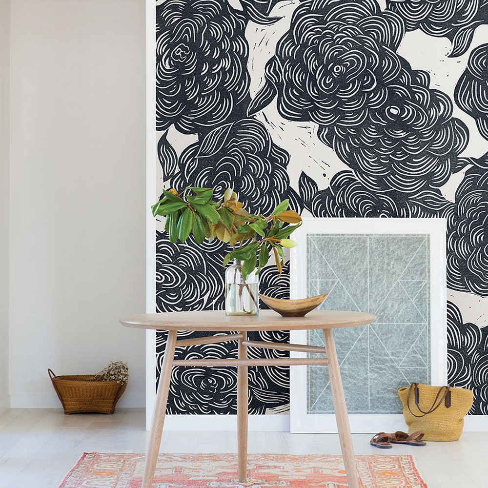 | Bring drama and earthen elegance to your walls with this eye-catching floral mural from artist Karen Revis. The hand-carved rose linocuts are stamped in black ink against crisp white. Roses Black Wall Mural comes on 5 panels. Brand: Karen Revis x A-Street Prints Match: NA Sheet Length: 108 Sheet Width: 27 # of Sheets: 5 Large black linocut roses are a dramatic yet down-to-earth accent for your home Printed on non woven material Paste not included Comes in 5 panels Measures 11-ft 3-in wide by 9-ft tall when assembled current Flowers Graphics Black And White Wallpaper |