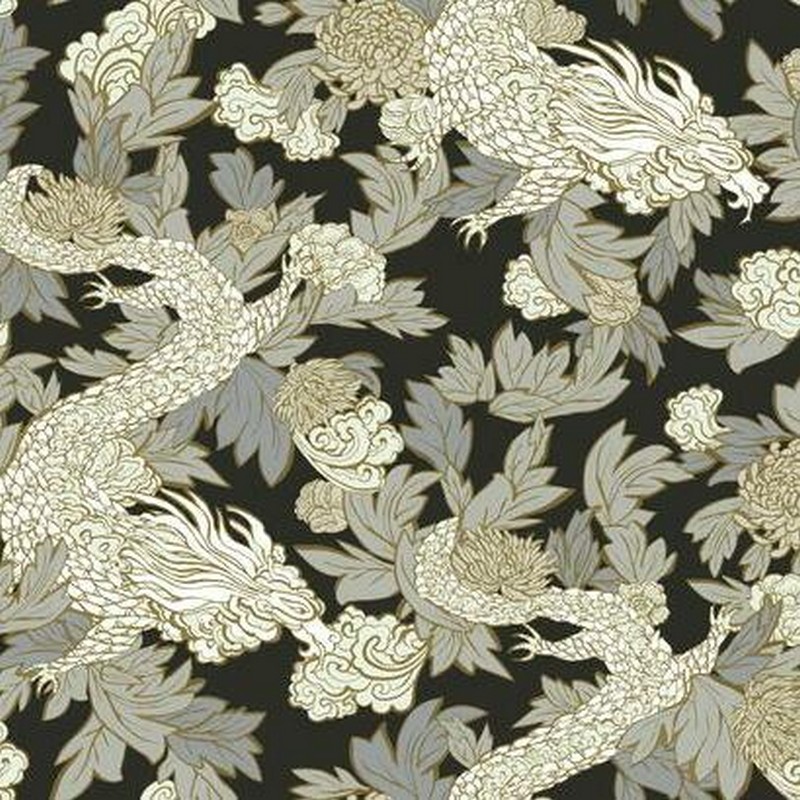 York Wallcovering  Ming Dragon Wallpaper Black Gold