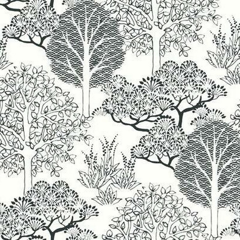 | Silk print patterns act as leaves in uniquely beautiful forest pattern Kimono Trees; offered in both metallic and matte colors. Prepasted - Washable - Strippable Packaged and sold as a double roll Repeat: 25.25 in. Match: Straight Black and White Resource Library |