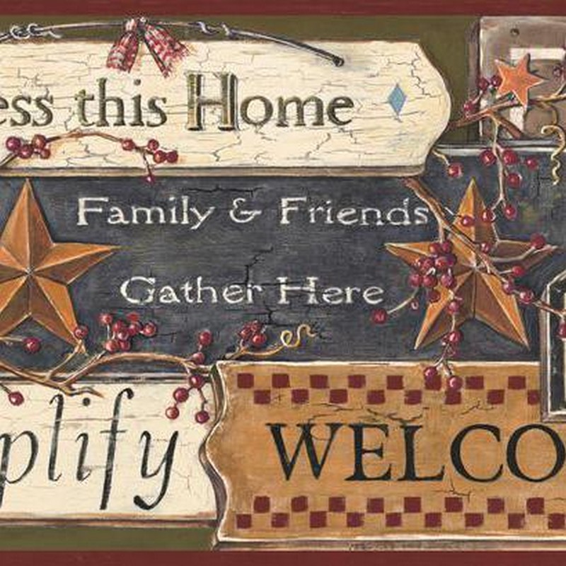 York Wallcovering  Country Sign Border Green Burgundy