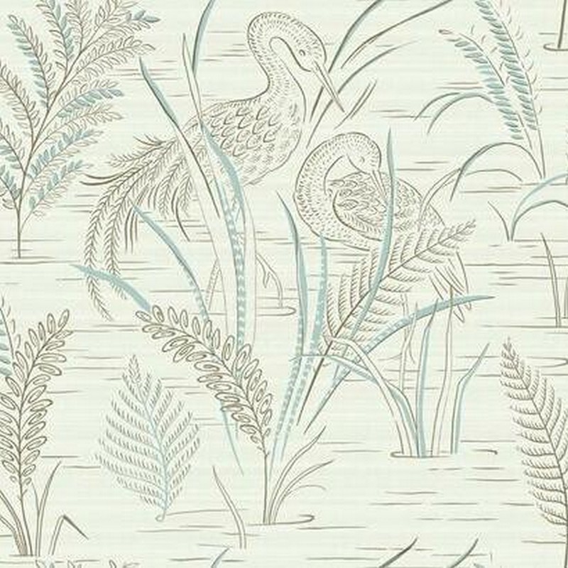 York Wallcovering Fernwater Cranes Wallpaper Brown Blue