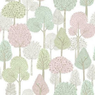York Wallcovering Treetops Peel and Stick Wallpaper Pink Mint
