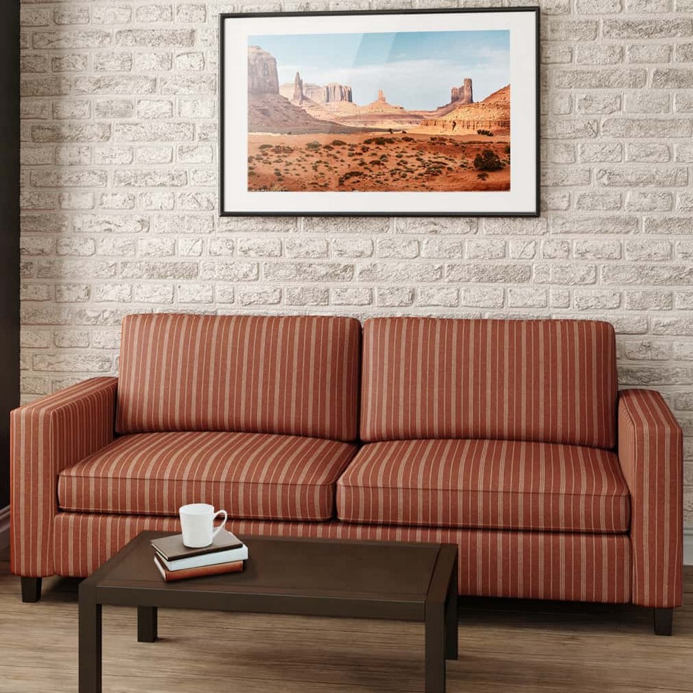 | Charlotte Colors Shades of Adobe Orange Suitable for Residential Striped Fabric Shown Railroaded (Across The Roll) Striped Fabric |