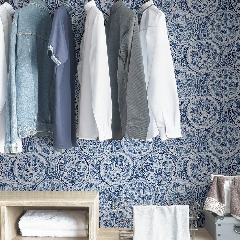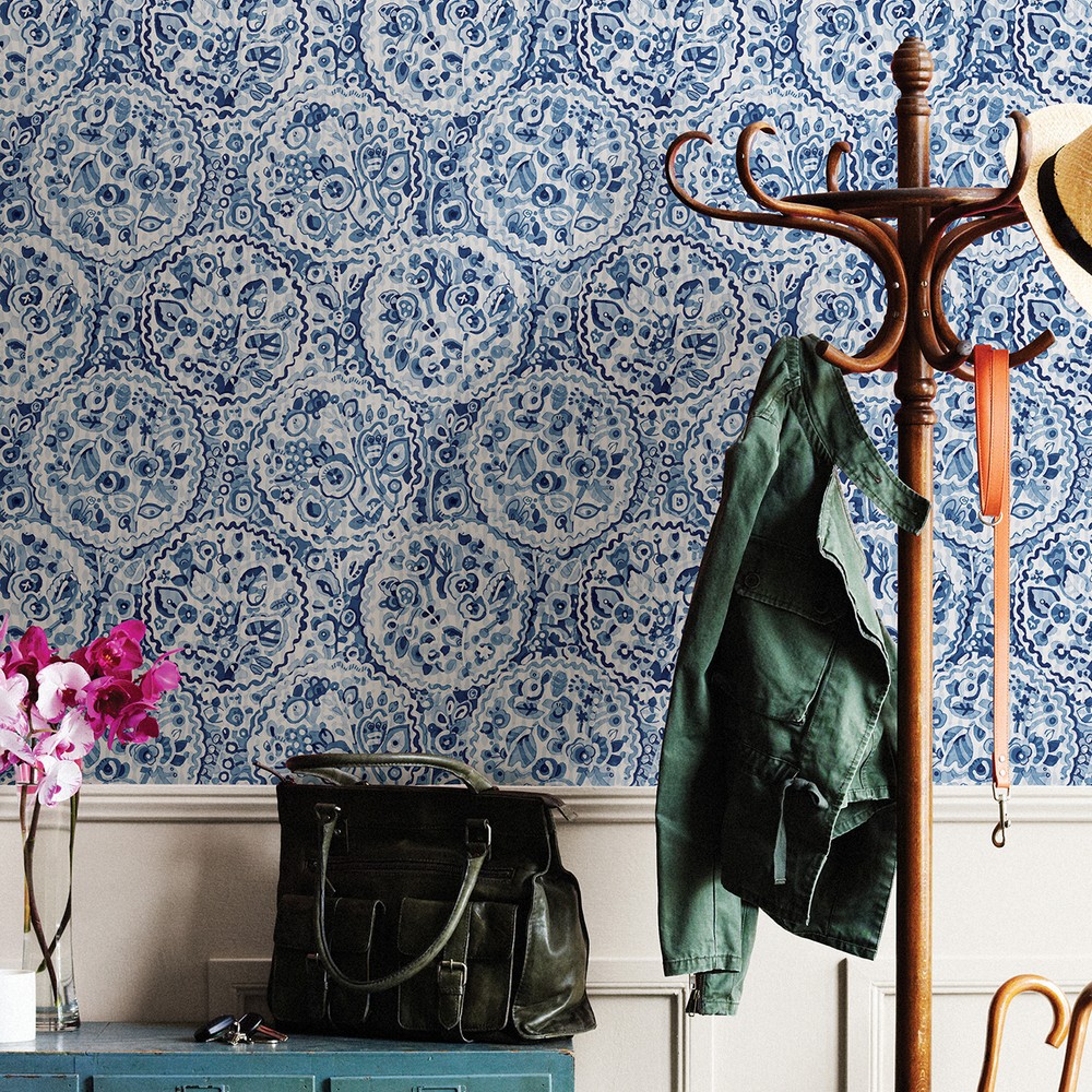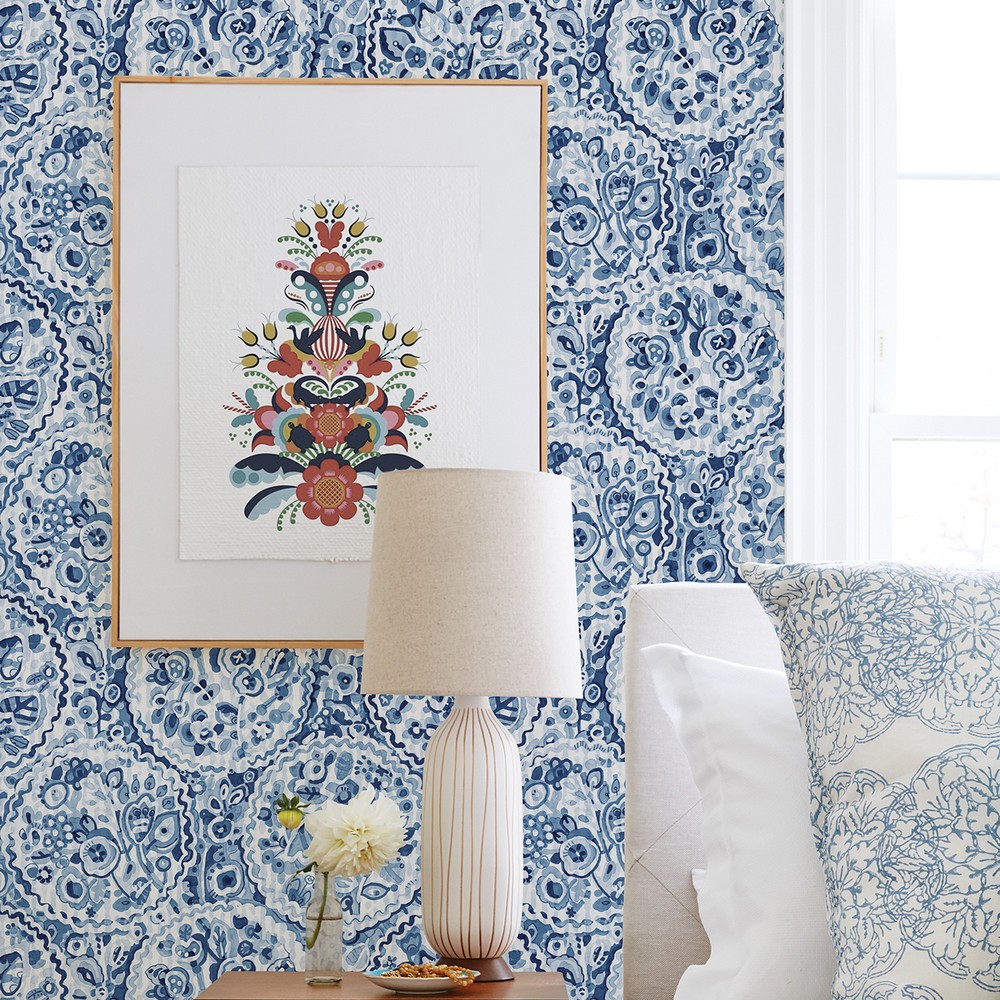Caroline et Bettina Match: Straight Bohemian Brand: Caroline et Bettina Match: Straight Sheet Length: 216 Sheet Width: 20.5 # of Sheets: 1 Blue and white floral peel and stick wallpaper by Caroline et Bettina Peel and stick to apply, pull up to remove Caroline et Bettina x NuWallpaper is safe for walls and leaves no sticky residue behind Easily repositionable while installing Caroline et Bettina x NuWallpaper sticks to any smooth, flat surface - perfect for DIY projects Ideal for rental or home decorating Comes on a 20.5-in x 18-ft roll and covers about 30.75 sq. ft Design repeat of 13.5-in Peel & Stick Wallpaper Medallions Bohemian |