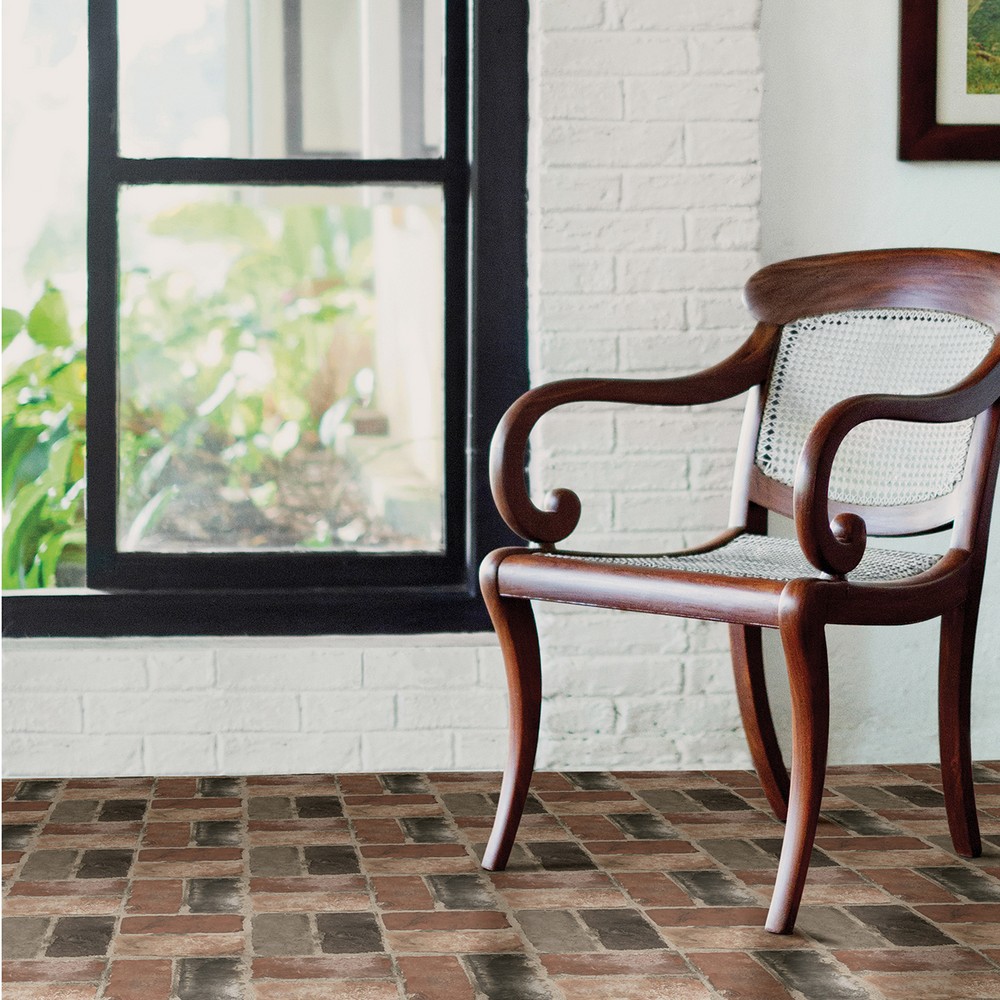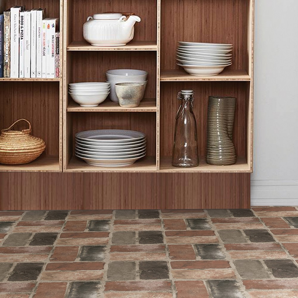 Brewster Wallcovering Harvard Brick Red Peel Stick Floor Tiles FP3293