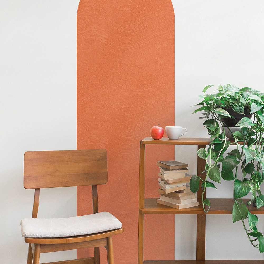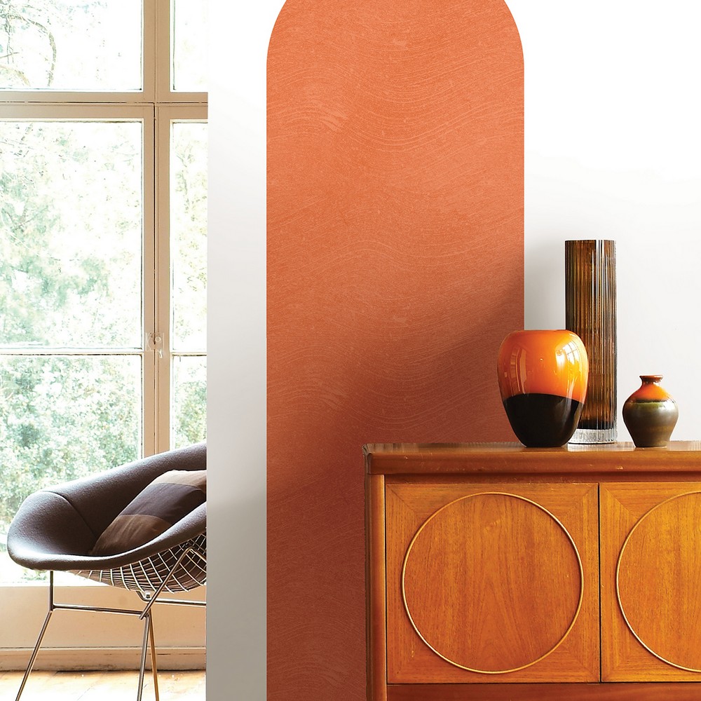Solid terracotta peel and stick archway wall decal with a bohemian style