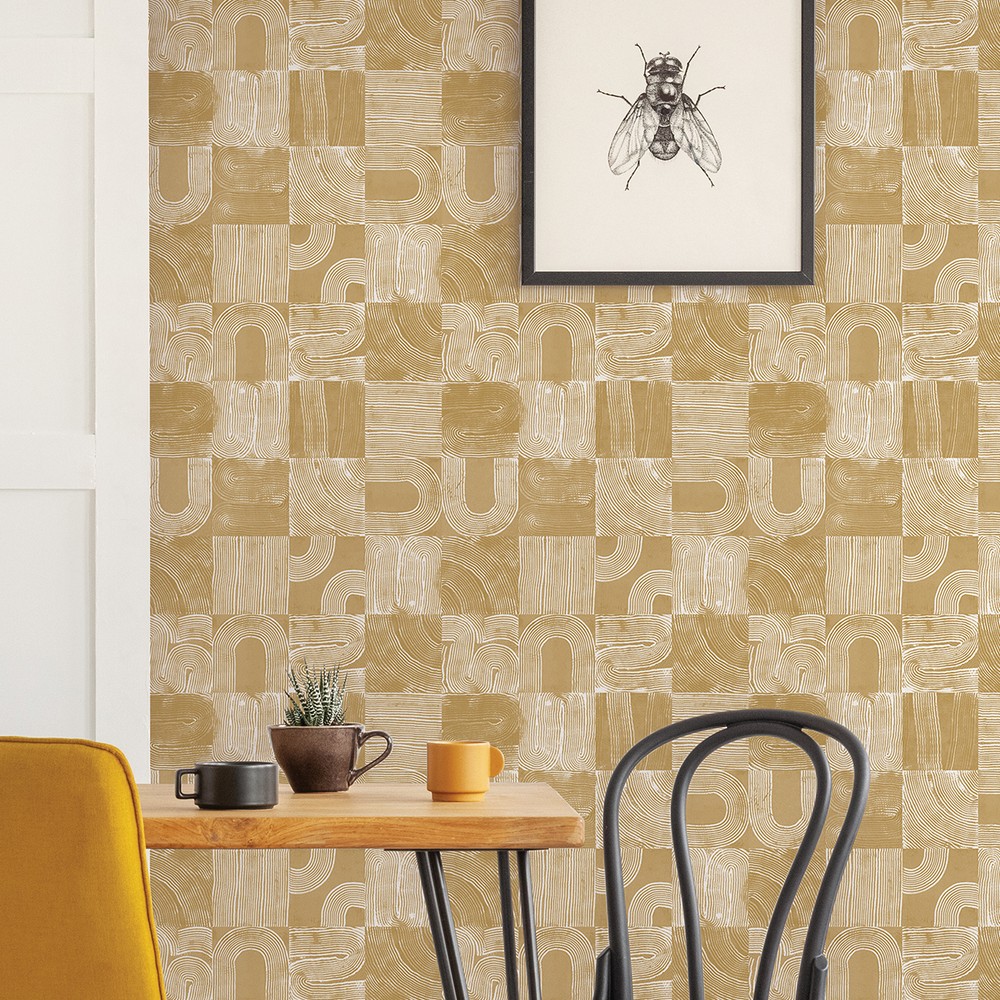 current mustard geometric peel and stick wallpaper featuring bohemian arches