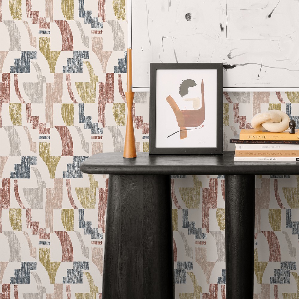 Brewster Wallcovering  Warm Multi Lenny Geometric Peel Stick Wallpaper NUS4632