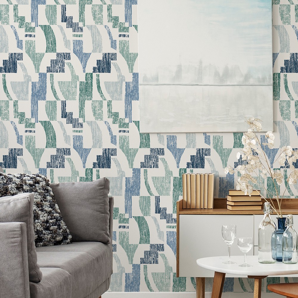 NuWallpaper Match: Straight current Brand: NuWallpaper Match: Straight Sheet Length: 216 Sheet Width: 20.5 # of Sheets: 1 Blue and green geometric peel and stick wallpaper Peel and stick to apply, pull up to remove NuWallpaper is safe for walls and leaves no sticky residue behind Easily repositionable while installing NuWallpaper sticks to any smooth, flat surface - perfect for DIY projects Ideal for rental or home decorating Comes on a 20.5-in x 18-ft roll and covers about 30.75 sq. ft Design repeat of 20.9-in Peel & Stick Wallpaper Geometrics current |
