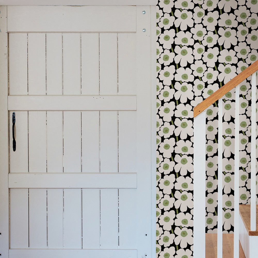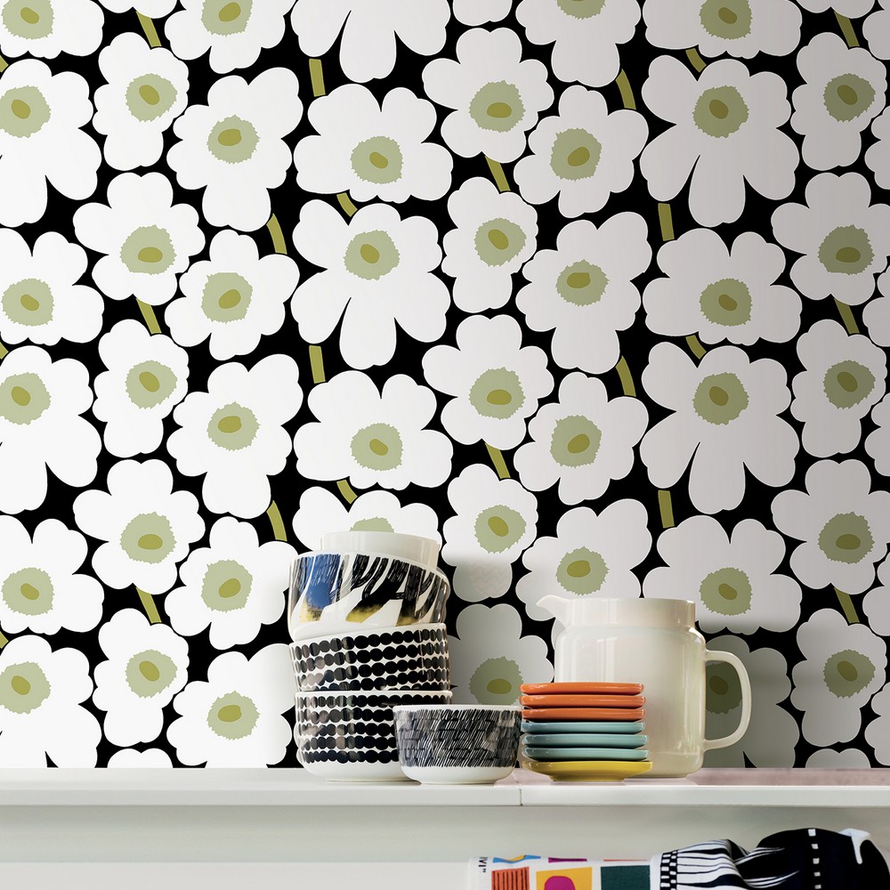 Marimekko Match: Straight Eclectic Brand: Marimekko Match: Straight Sheet Length: 216 Sheet Width: 20.8 # of Sheets: 1 Black maximalist peel and stick wallpaper by Marimekko Peel and stick to apply, pull up to remove Marimekko x NuWallpaper is safe for walls and leaves no sticky residue behind Easily repositionable while installing Marimekko x NuWallpaper sticks to any smooth, flat surface - perfect for DIY projects Ideal for rental or home decorating Comes on a 20.8-in x 18-ft roll and covers about 31.2 sq. ft Design repeat of 8.5-in Peel & Stick Wallpaper Flowers Eclectic |