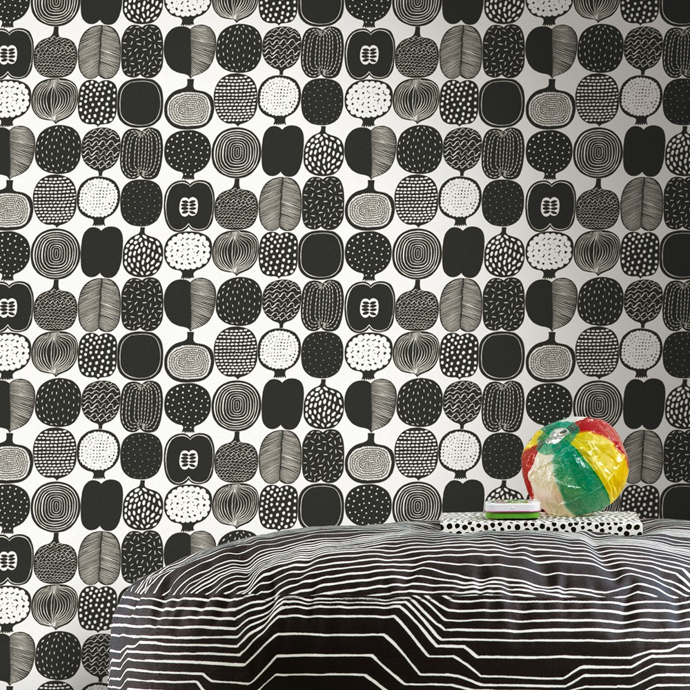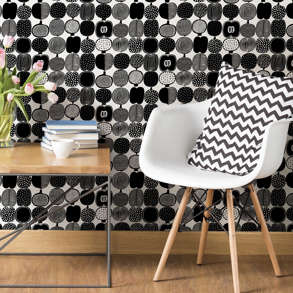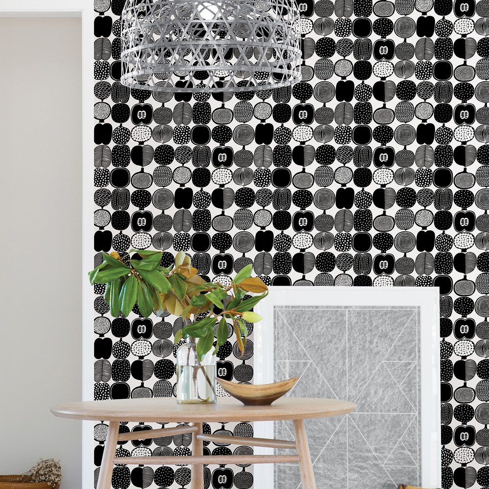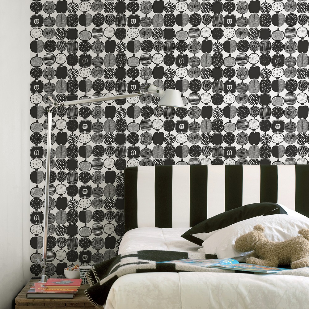 Marimekko Match: Straight Eclectic Brand: Marimekko Match: Straight Sheet Length: 216 Sheet Width: 20.8 # of Sheets: 1 Black and white fruit inspired peel and stick wallpaper by Marimekko Peel and stick to apply, pull up to remove Marimekko x NuWallpaper is safe for walls and leaves no sticky residue behind Easily repositionable while installing Marimekko x NuWallpaper sticks to any smooth, flat surface - perfect for DIY projects Ideal for rental or home decorating Comes on a 20.8-in x 18-ft roll and covers about 31.2 sq. ft Design repeat of 13.78-in Peel & Stick Wallpaper Fruit Eclectic |