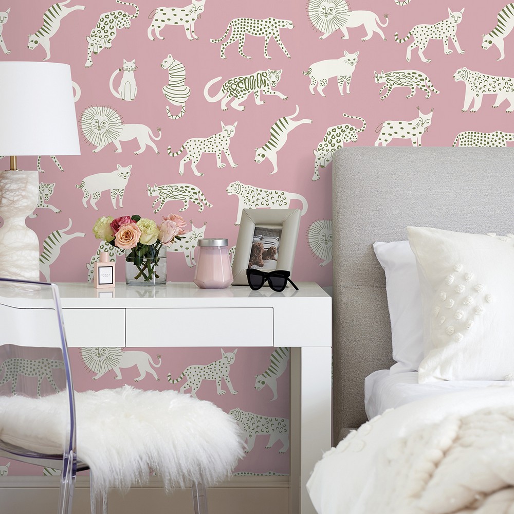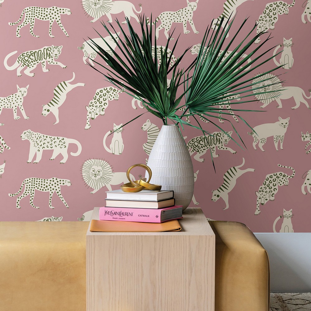 Leah Duncan Match: Half Drop Whimsical Brand: Leah Duncan Match: Half Drop Sheet Length: 216 Sheet Width: 20.5 # of Sheets: 1 Pink peel and stick wallpaper featuring exotic cats designed by Leah Duncan Peel and stick to apply, pull up to remove Leah Duncan x NuWallpaper is safe for walls and leaves no sticky residue behind Easily repositionable while installing Leah Duncan x NuWallpaper sticks to any smooth, flat surface - perfect for DIY projects Ideal for rental or home decorating Comes on a 20.5-in x 18-ft roll and covers about 30.75 sq. ft Design repeat of 20.5-in Peel & Stick Wallpaper Novelty Whimsical |