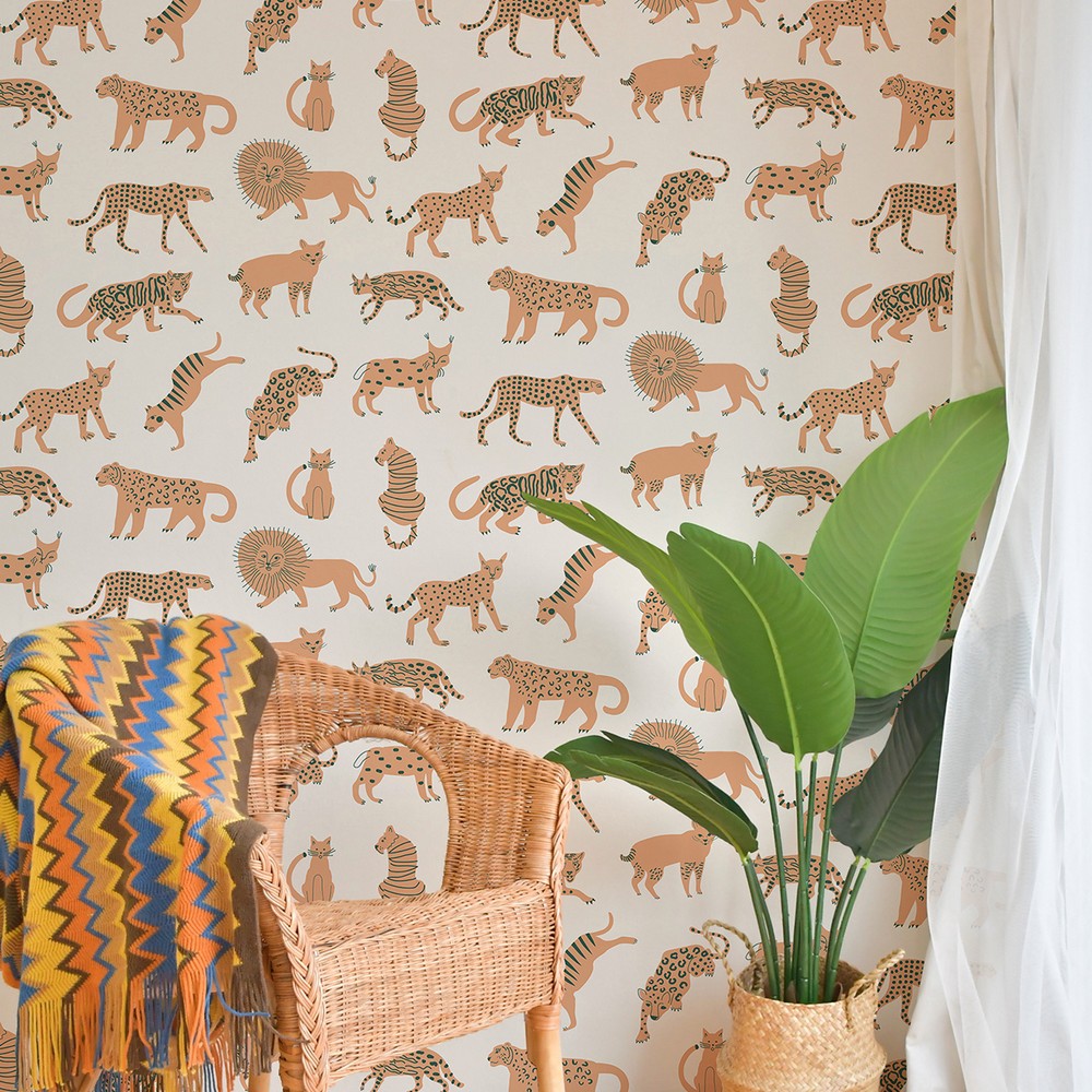 Leah Duncan Match: Half Drop Whimsical Brand: Leah Duncan Match: Half Drop Sheet Length: 216 Sheet Width: 20.5 # of Sheets: 1 Orange peel and stick wallpaper featuring exotic cats designed by Leah Duncan Peel and stick to apply, pull up to remove Leah Duncan x NuWallpaper is safe for walls and leaves no sticky residue behind Easily repositionable while installing Leah Duncan x NuWallpaper sticks to any smooth, flat surface - perfect for DIY projects Ideal for rental or home decorating Comes on a 20.5-in x 18-ft roll and covers about 30.75 sq. ft Design repeat of 20.5-in Peel & Stick Wallpaper Novelty Whimsical |