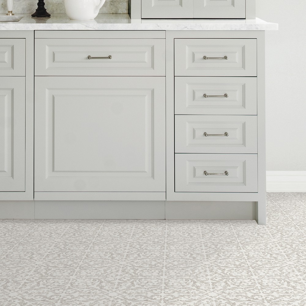 FloorPops current Brand: FloorPops Match: NA Sheet Length: 12 Sheet Width: 12 # of Sheets: 10 Polished and sophisticated taupe peel and stick floor tile Peel and stick to apply Easy installation - no grout or special tools needed Water resistant and washable Virgin Vinyl material with a textured low lustre finish and permanent adhesive makes tiles durable One package contains 10 tiles that each measure .06-in in depth Each tile measures 12 x 12 inches Floor Tiles Medallions current |