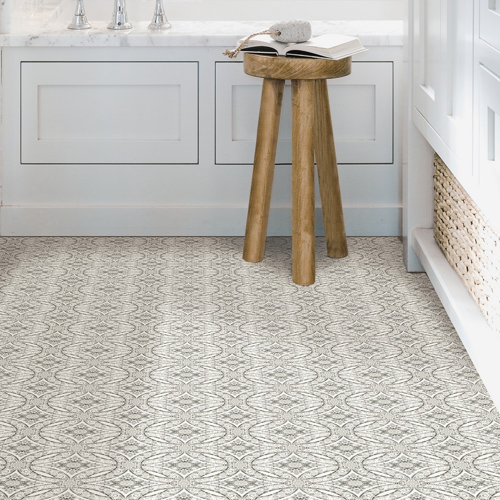 FloorPops Bohemian Brand: FloorPops Match: NA Sheet Length: 12 Sheet Width: 12 # of Sheets: 10 current bohemian styled peel and stick floor tile Peel and stick to apply Easy installation - no grout or special tools needed Water resistant and washable Virgin Vinyl material with a textured low lustre finish and permanent adhesive makes tiles durable One package contains 10 tiles that each measure .06-in in depth Each tile measures 12 x 12 inches Floor Tiles Medallions Bohemian |