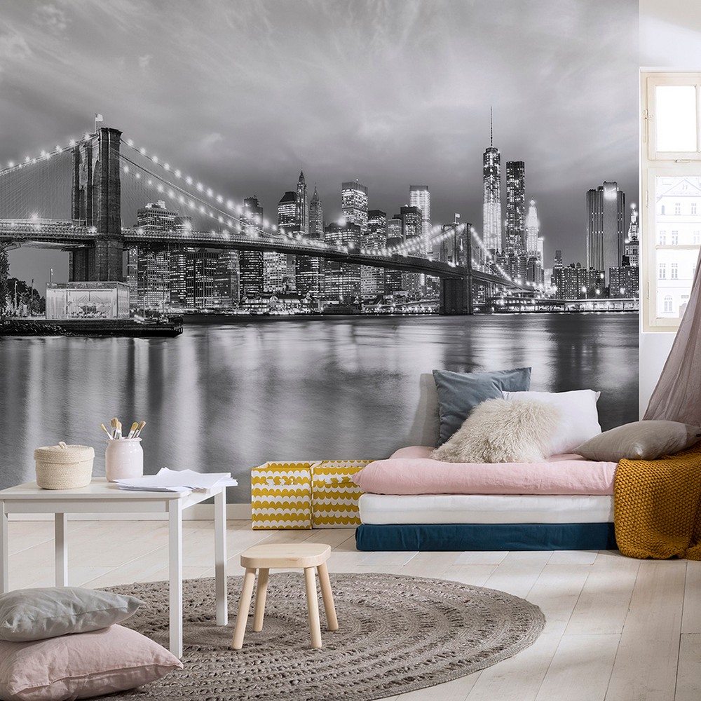 Komar Black & White Brand: Komar Match: NA Sheet Length: 50 Sheet Width: 36.25 # of Sheets: 8 Scenic, photographic rendering of the Brooklyn Bridge in black and white Printed on recyclable paper Paste included Comes in 8 panels Measures 12-ft 1-in wide by 8-ft 3-in tall when assembled Wall Murals Graphics Black & White |