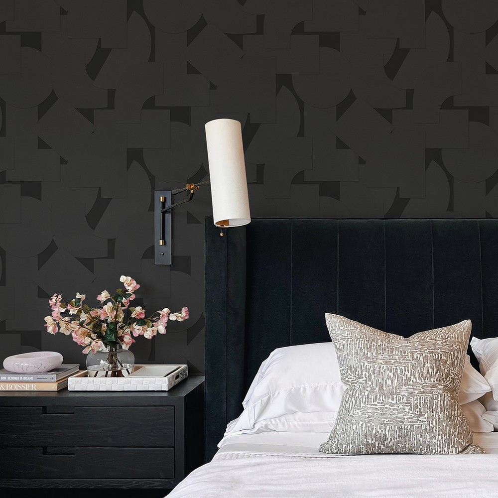 Brewster Wallcovering Black Bas Shapes Peel Stick Wallpaper ATS4749