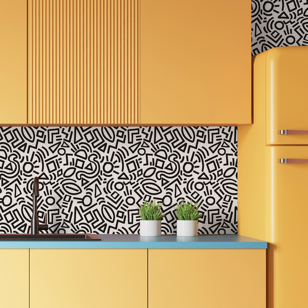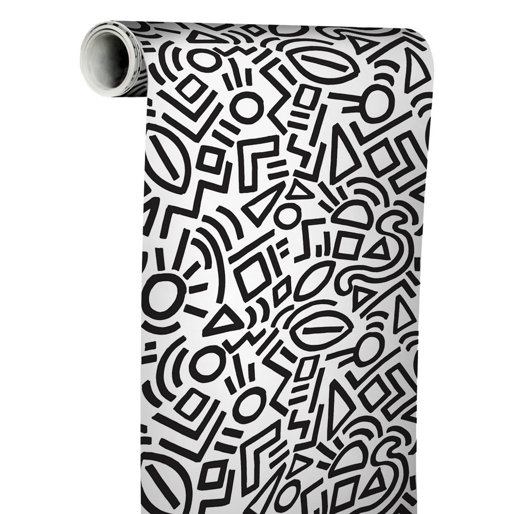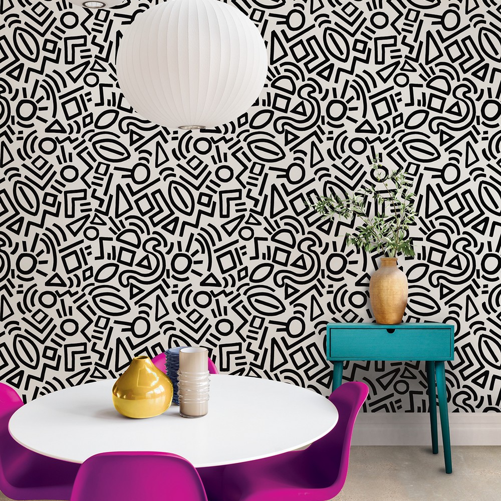 Brewster Wallcovering Black Doodle Abstract Peel Stick Wallpaper AES4789