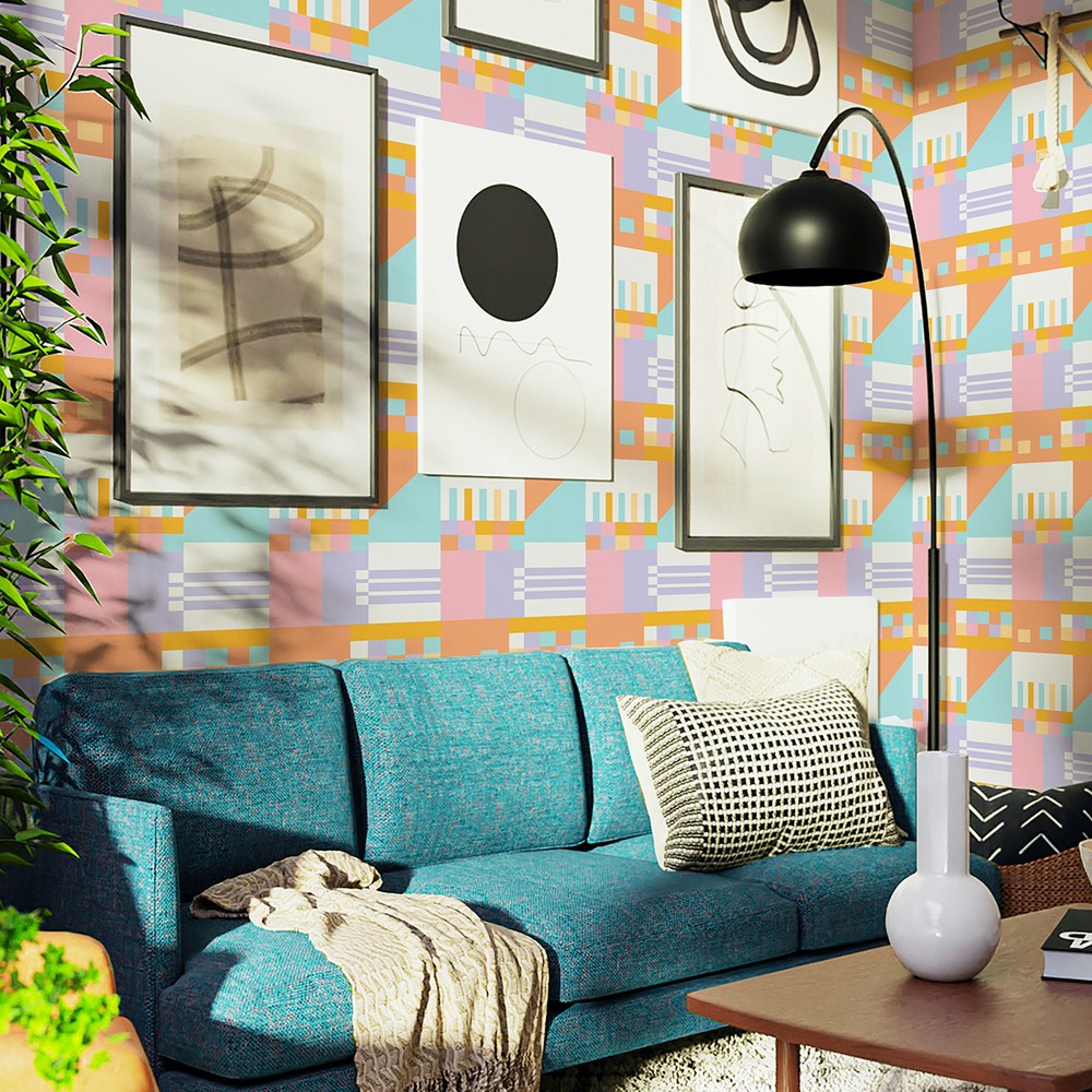 Aelfie Match: Straight Retro Brand: Aelfie Match: Straight Sheet Length: 216 Sheet Width: 20.5 # of Sheets: 1 This peel and stick NuWallpaper by Aelfie features a retro-inspired geometric design in pastel neon shades Peel and stick to apply, pull up to remove Aelfie x NuWallpaper is safe for walls and leaves no sticky residue behind Easily repositionable while installing Aelfie x NuWallpaper sticks to any smooth, flat surface - perfect for DIY projects Ideal for rental or home decorating Comes on a 20.5-in x 18-ft roll and covers about 30.75 sq. ft Design repeat of 10.25-in Peel & Stick Wallpaper Geometrics Retro Girls Wallpaper |