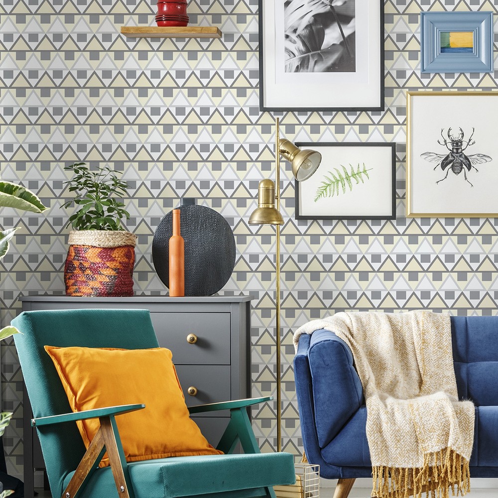 Aelfie Match: Straight Retro Brand: Aelfie Match: Straight Sheet Length: 216 Sheet Width: 20.5 # of Sheets: 1 Grey and light yellow tones make a geometric design in this peel and stick NuWallpaper designed by Aelfie Peel and stick to apply, pull up to remove Aelfie x NuWallpaper is safe for walls and leaves no sticky residue behind Easily repositionable while installing Aelfie x NuWallpaper sticks to any smooth, flat surface - perfect for DIY projects Ideal for rental or home decorating Comes on a 20.5-in x 18-ft roll and covers about 30.75 sq. ft Design repeat of 10.25-in Peel & Stick Wallpaper Geometrics Retro Boys Wallpaper |