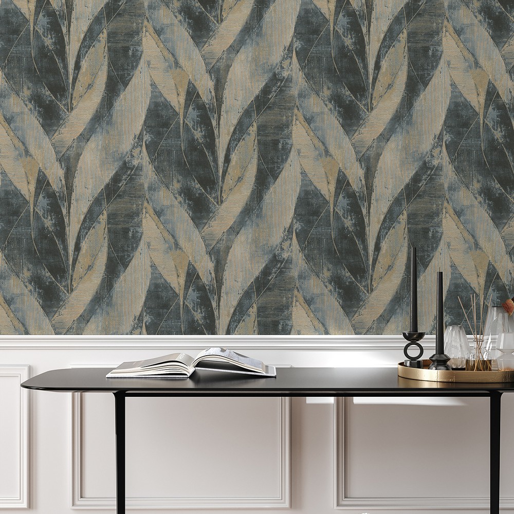 Brewster Wallcovering  Blake Denim Leaf Wallpaper 4096-520064