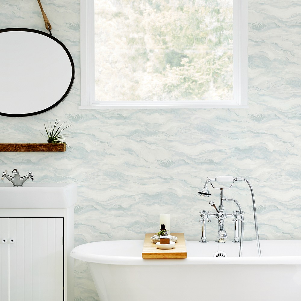 Chesapeake Match: Half Drop Roll Width in Inches: 20.5 Roll Length in Feet: 33 Prepasted Abstract Wet Strippable Color Family: Blues Geometrics Abstract Watercolor And Abstract |
