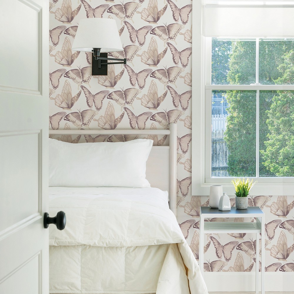 Brewster Wallcovering Janetta Blush Butterfly Wallpaper 3124-13934