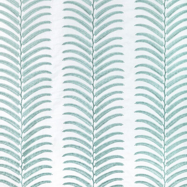 | EMBROIDERY BOTANICAL & FLORAL TROPICAL MODERN LUXE III KRAVET COUTURE EMBROIDERED ; Colors: WHITE SPA BLUE |
