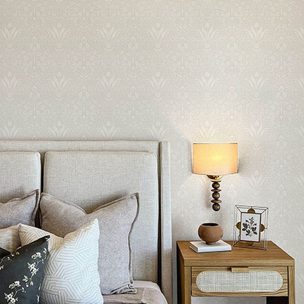 | The first blooms of spring take center stage in this charming ogee wallpaper. Tulips, daises, and other first-of-the-season flowers are delicately illustrated in white against a light grey backdrop. Mara is an unpasted, non woven wallpaper measuring 20.9 inches wide by 33 feet long, covering approxiamately About 57.5 square feet square feet per roll A-Street Prints Page: 43 Match: Straight Double Double Roll Width in Inches: 20.9 Double Double Roll Length in Feet: 33 Unpasted Botanical Strippable Color Family: Greys Botanical Botanical |