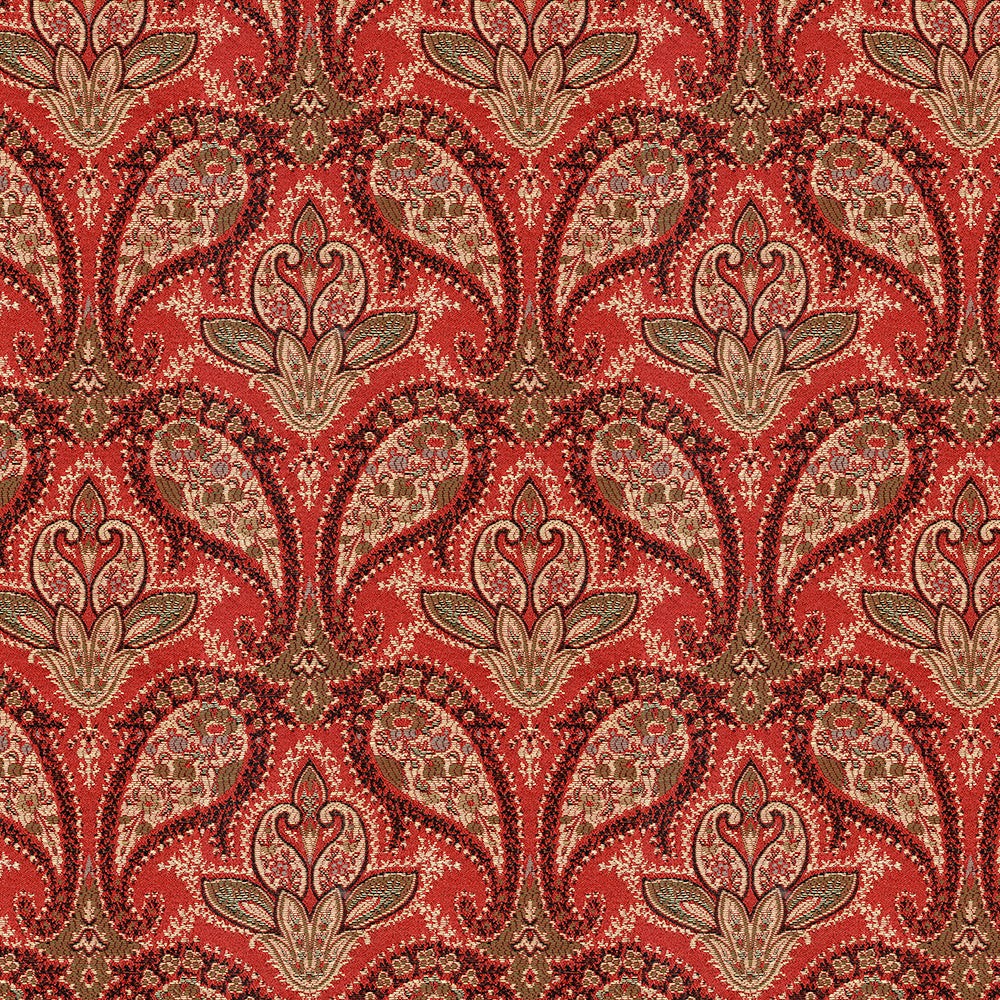 | ABBEYSHEA Red Woven Jacquard Colors: Red Brown Traditional Backing: 100% Acrylic Kiss Coat Colorfastness to Light AATCC 16 - Grade 4, hours Bedding,Decorative Accessories,Pillows,Residential Seating plays with shades of red in this rich paisley design |