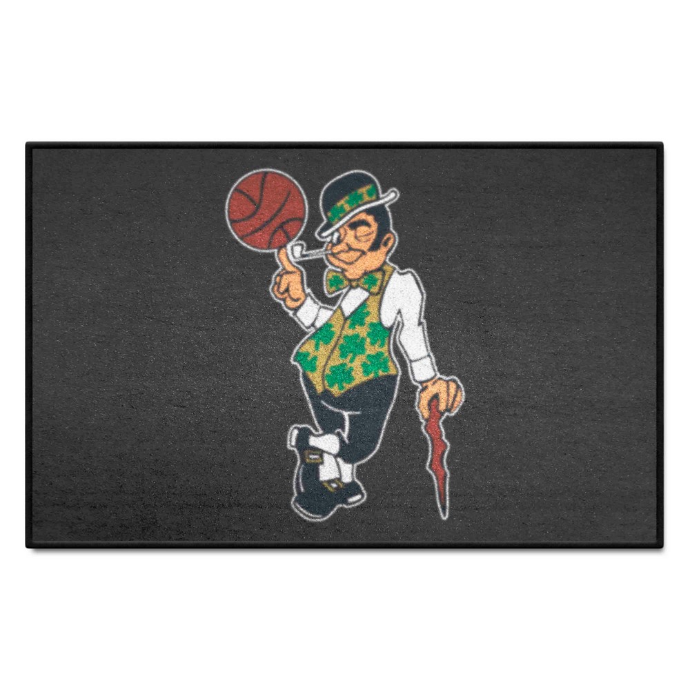 | Boston Celtics Starter Mat Accent Rug - 19in. x 30in. 9 Ounce, 100 % Nylon Face Recycled vinyl backing for a durable and longer-lasting product Machine made and tufted in the USA Non-skid backing with serged borders for added durability Machine washable; vacuum regularly and spot clean for any easy and quick clean Officially licensed and chromojet-printed in true team colors for vibrant, lasting color NBA - Boston Celtics in Massachusetts NBA National Basketball Association |