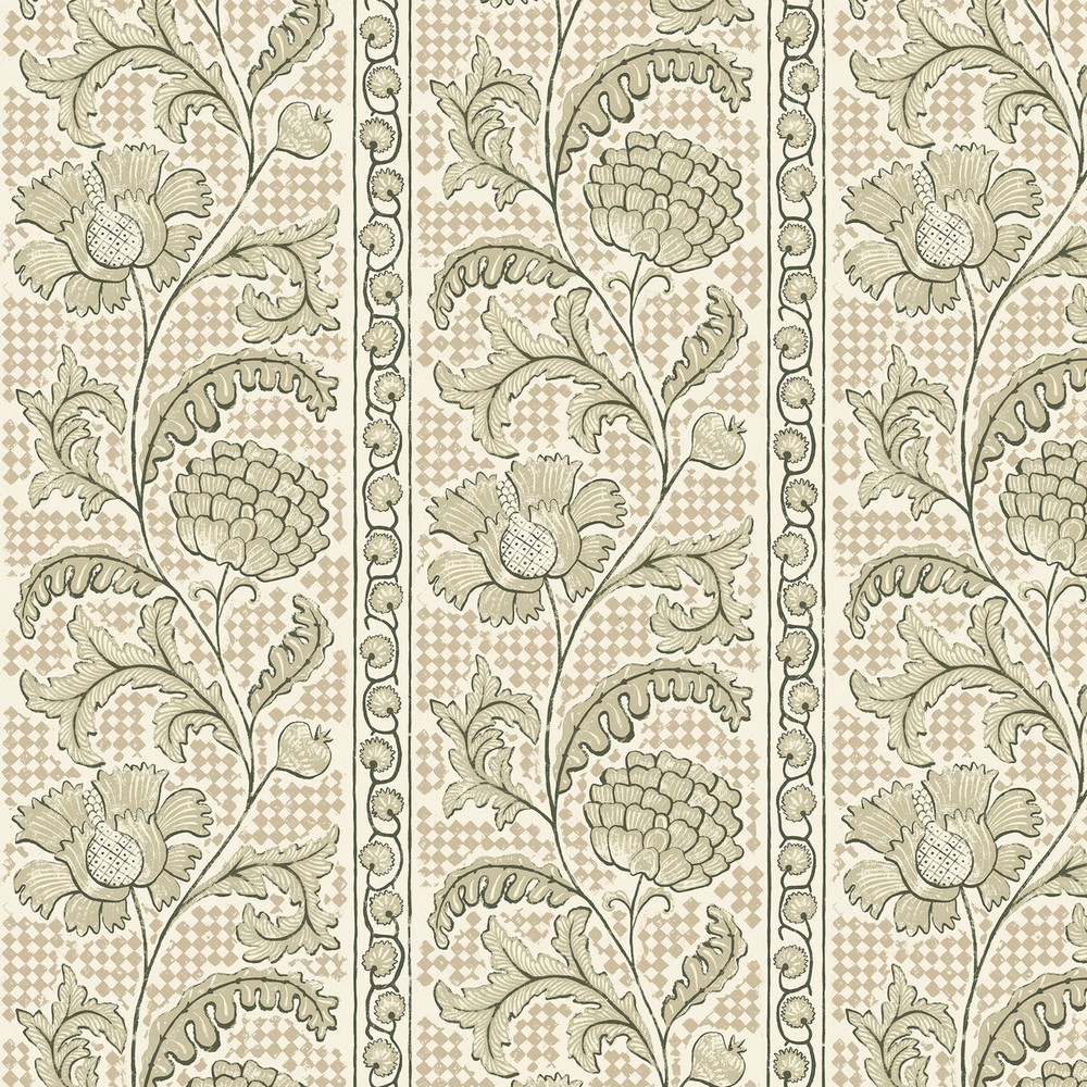 | Kravet Wallcoverings JOSEPHINE MUNSEY MAITLAND BOTANICAL & FLORAL STRIPES PRINT PRETRIMMED TAUPE and IVORY Wallpaper Priced and sold by the roll of 11 Yards Pattern Direction: Up the bolt |
