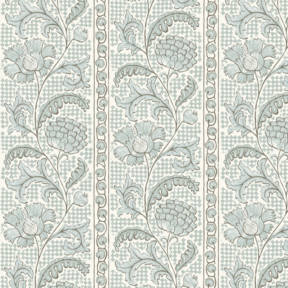 | Kravet Wallcoverings JOSEPHINE MUNSEY MAITLAND BOTANICAL & FLORAL STRIPES PRINT PRETRIMMED LIGHT BLUE and GREY Wallpaper Priced and sold by the roll of 11 Yards Pattern Direction: Up the bolt |