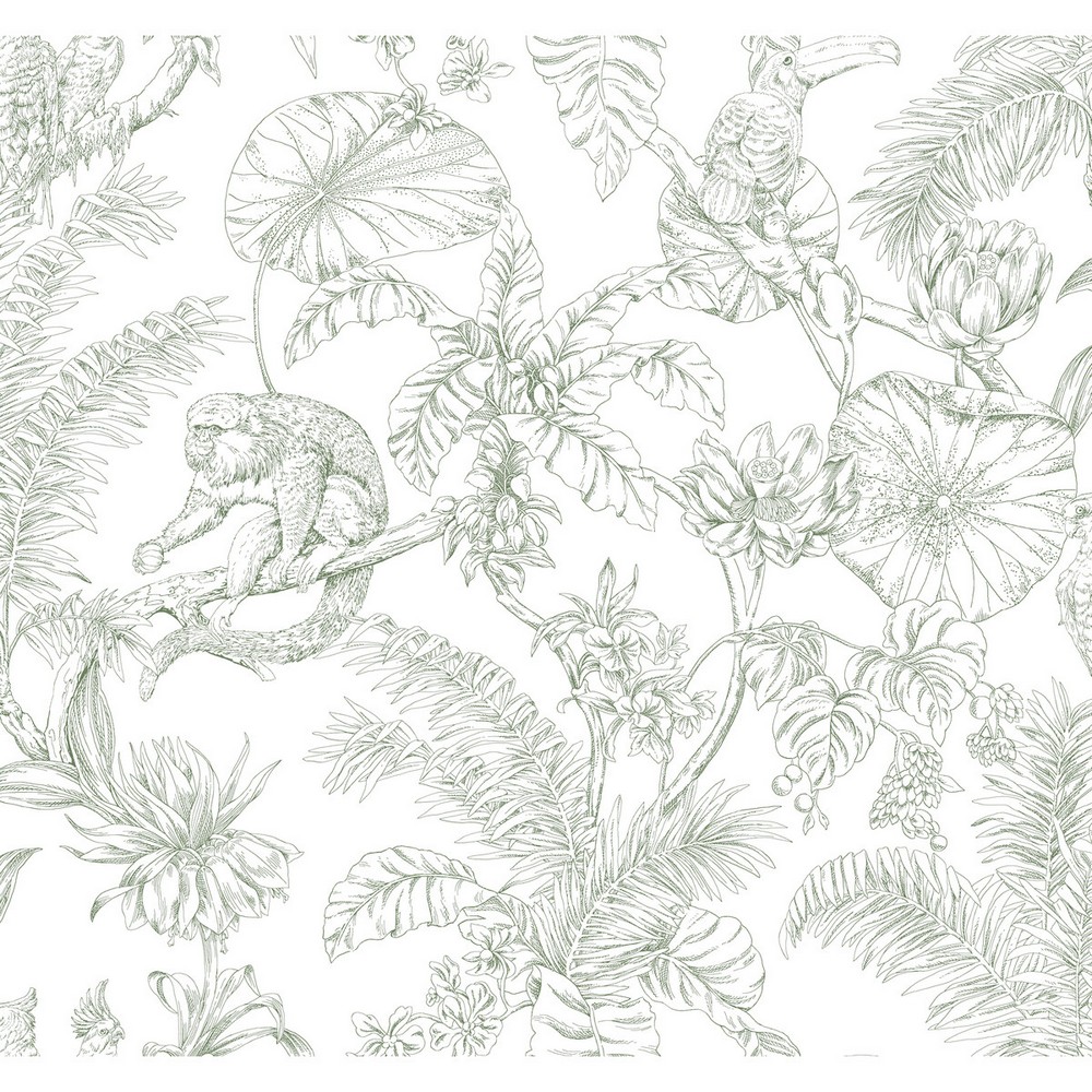 | Kravet Wallcoverings TOILES RESOURCE LIBRARY ANIMAL/INSECTS BOTANICAL & FLORAL PRINT UNTRIMMED GREEN and WHITE Wallpaper Priced and sold by the roll of 9 Yards Pattern Direction: Up the bolt |
