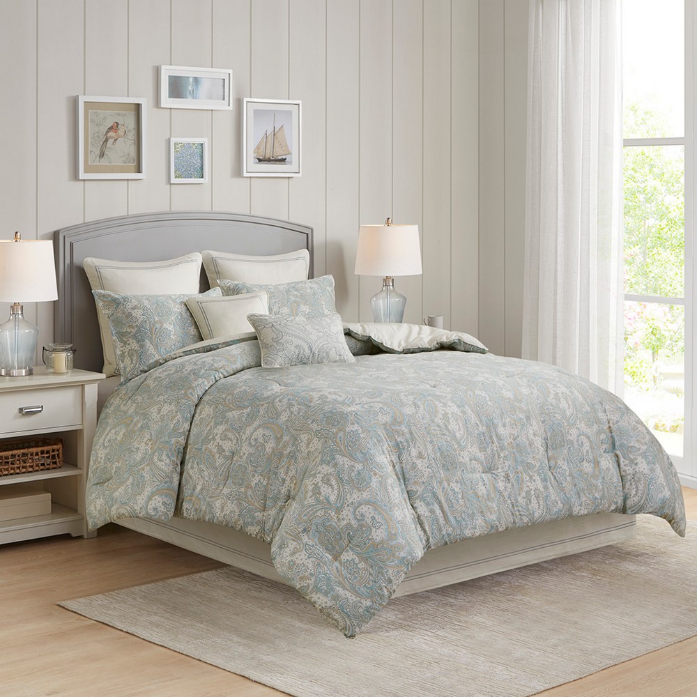| Harbor House 12x18" 1 Dec Pillow: 12"W x 18"L Faceand back: 100% cotton percale solid fabric; Lining: cotton blend fabric; Filling:100%polyester Traditional Style Includes 1 Piece(s) Spot Clean The Harbor House Chelsea bedding collection features a beautiful paisley print in soft blues and khaki on a soft ivory sateen fabric. This 100% cotton percale oblong decorative pillow is an accessory to the Chelsea collection and features a beautiful paisley embroidery that adds a touch of luxury to the set. This item is also OEKO-TEX certified, meaning it does not contain any harmful substances or chemicals, ensuring quality comfort and wellness. The Chelsea collection is perfect for your master bedroom or guest room. |