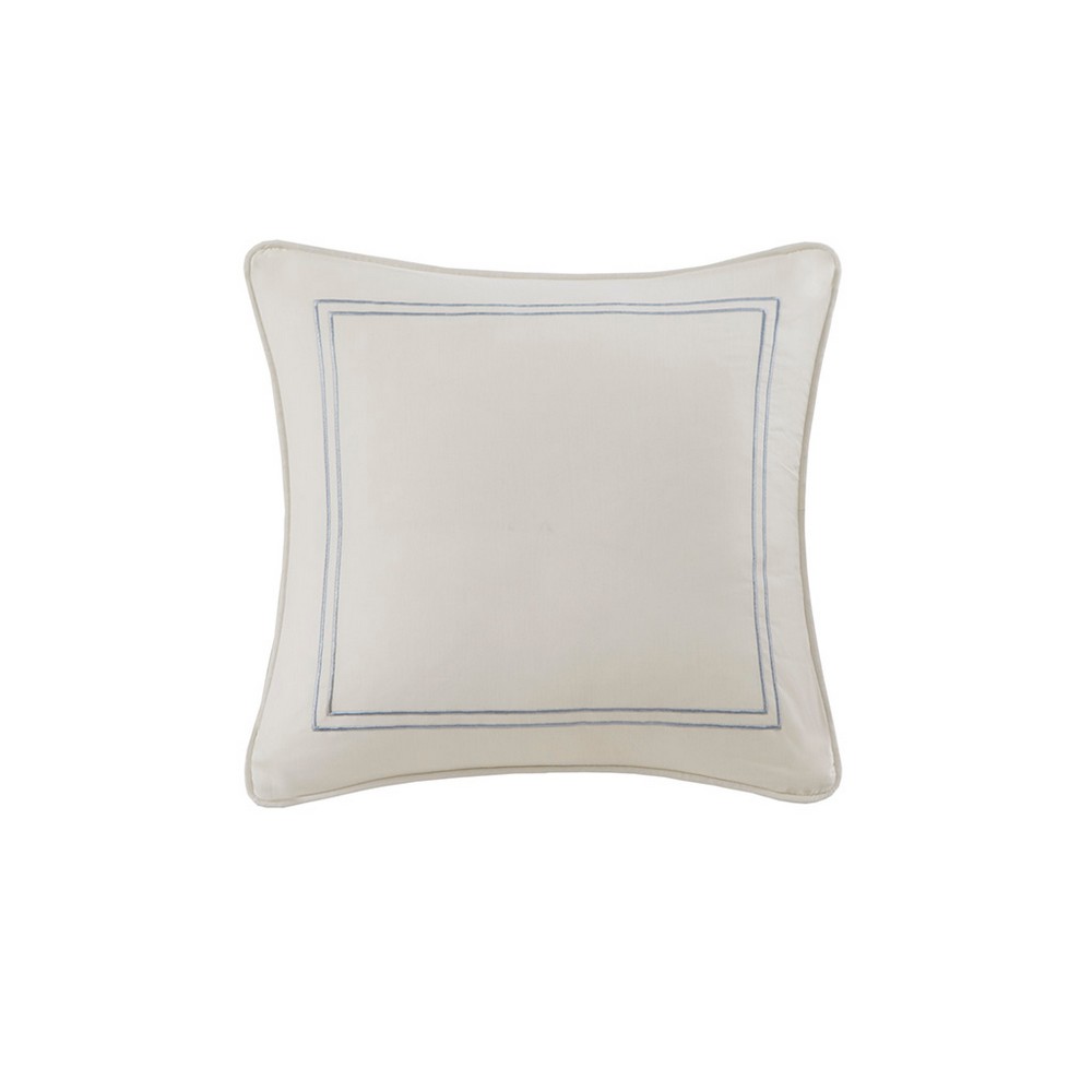 | Harbor House 16x16" 1 Pillow: 16"W x 16"L Faceand back: 100% cotton percale solid fabric; Lining: cotton blend fabric; Filling:100%polyester Traditional Style Includes 1 Piece(s) Spot clean The Harbor House Chelsea bedding collection features a beautiful paisley print in soft blues and khaki on a soft ivory sateen fabric. This 100% cotton percale square pillow is an accessory to the Chelsea collection and features a beautiful, tailored satin stitch embroidered border that adds a touch of luxury to the set. This item is also OEKO-TEX certified, meaning it does not contain any harmful substances or chemicals, ensuring quality comfort and wellness. The Chelsea collection is perfect for your master bedroom or guest room. |