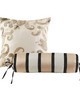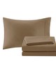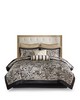 | Madison Park Full 1 Comforter: 82"W x 90"L 2 Standard Shams: 20"W x 26"L + 2"D (2) 1 Bedskirt: 54"W x 74"L + 15"D 2 Euro Shams: 26"W x 26"L (2) 1 Flat Sheet: 81"W x 96"L 1 Fitted Sheet: 54"W x 74"L + 14"D 2 Pillowcases: 20"W x 32"L (2) 1 Decorative Pillow: 18"W x 18"L Comforter/Sham: 100% polyester jacquard with 1/2" poly charmeuse piping, 100% brushed polyester microfiber reverse Fill: Polyester filling Sheets: 100% cotton twill Euro Sham: Polyester polyoni, quilted Square Pillow: 100% polyester jacquard, polyoni reve Traditional Style Includes 12 Piece(s) MACHINE WASH COLD, GENTLE CYCLE, AND SEPARATELY. DO NOT BLEACH. TUMBLE DRY LOW, REMOVE PROMPTLY, DO NOT IRON. IF THERE IS NO FREE MOVEMENT IN THE WASHER OR DRYER, USE LARGE CAPACITY COMMERCIAL WASHER/DRYER. Give your bedroom a classic and elegant look with the Madison Park Aubrey 12 Piece Complete Bed Set including cotton bed sheets. This stunning set features a jacquard weave with a modern paisley pattern in black, gold and silver. The comforter and shams have a 2" flange and 1/2" flat piping in soft gold for a refined touch. The comforter reverses to a dark sand shade that complements with the warm brown tones of the 100% cotton, 200 thread count sheet set. This set includes everything you need to create a luxurious and cozy bed. Some items may arrive in compact packaging: just fluff them up or iron lightly and they're ready to use. |