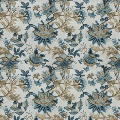 | RM Coco Painters Palette Cerulean Blue to Viridian Green Floral,Jacobean Print |