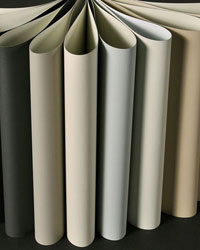 Unique PVC free compositon in neutral shades provide high quality at a great price. Perfect for both commercial and residential window treatments. All colors have an off-white backing.