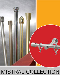 The Vesta Mistral chrome curtain rods and brass curtain rods feature simple finial designs that have been combined with the elegance of brass and chrome to make these metal curtain rods perfect for cotemporary lightweight curtains. Choose from finishes in antique brass to brushed brass, brushed nickel, polished brass and polished chrome finishes. These metal curtain rods are 3/8inch in diameter in a maximum length of 8 feet