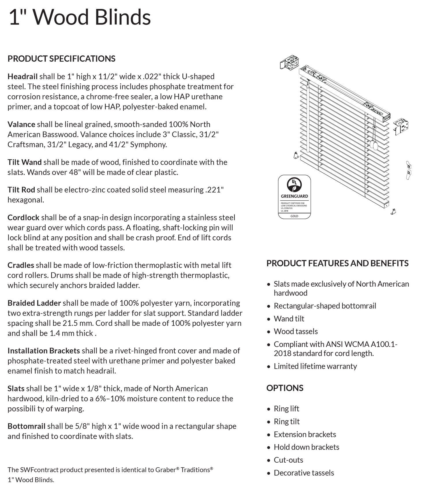 Wood blinds for your home will give your windows the warmth and beauty of real wood. Each Graber Traditions wood blind is custom made to your exact specifications using quality basswood slats. Available in 1", 2", and 2 3/8" North American hardwood wood slats with a range of painted and stained finishes. Custom made blinds are non-returnable.