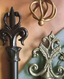 Drapery draws attention, but unique details stand out as can be seen in the cast and wrought iron curtain rods and hardware accessories by LJB. Choose from iron finials and poles in 3/4" to 1" and 1 1/2" sizes as well as brackets, rings, holdbacks and more. These wrought iron curtain rods are offered in a range of 24 environmentally safe, designer colors. These splendid finishes protect as well as decorate, to ensure enduring beauty to your window treatments.