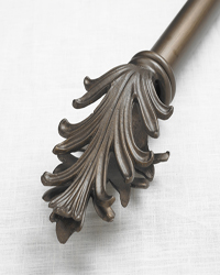 Large traditional themed wrought iron curtain rods and traversing drapery rods in heavy, durable wrought iron are offered to help compliment your window treatments. A huge offering of over 60 iron finial styles that fit on 1 5/8" diameter steel rods are available in 36 beautiful finish choices. Custom made in the USA these wrought iron curtain and traverse rods offer options for every decorating style. Choose from classic traditional styles and designs that will help you complete the look of your window treatments. Curtains will look great when hung from this large offering of wrought iron curtain rods and coordinating drapery hardware. Custom made in the USA with pride.
